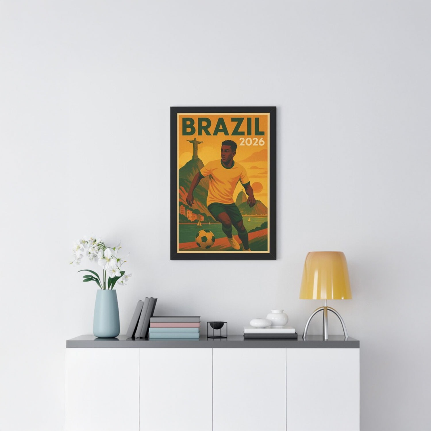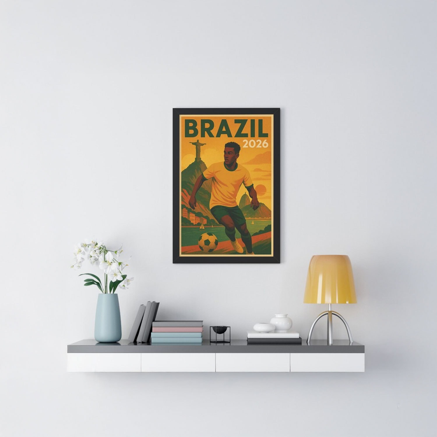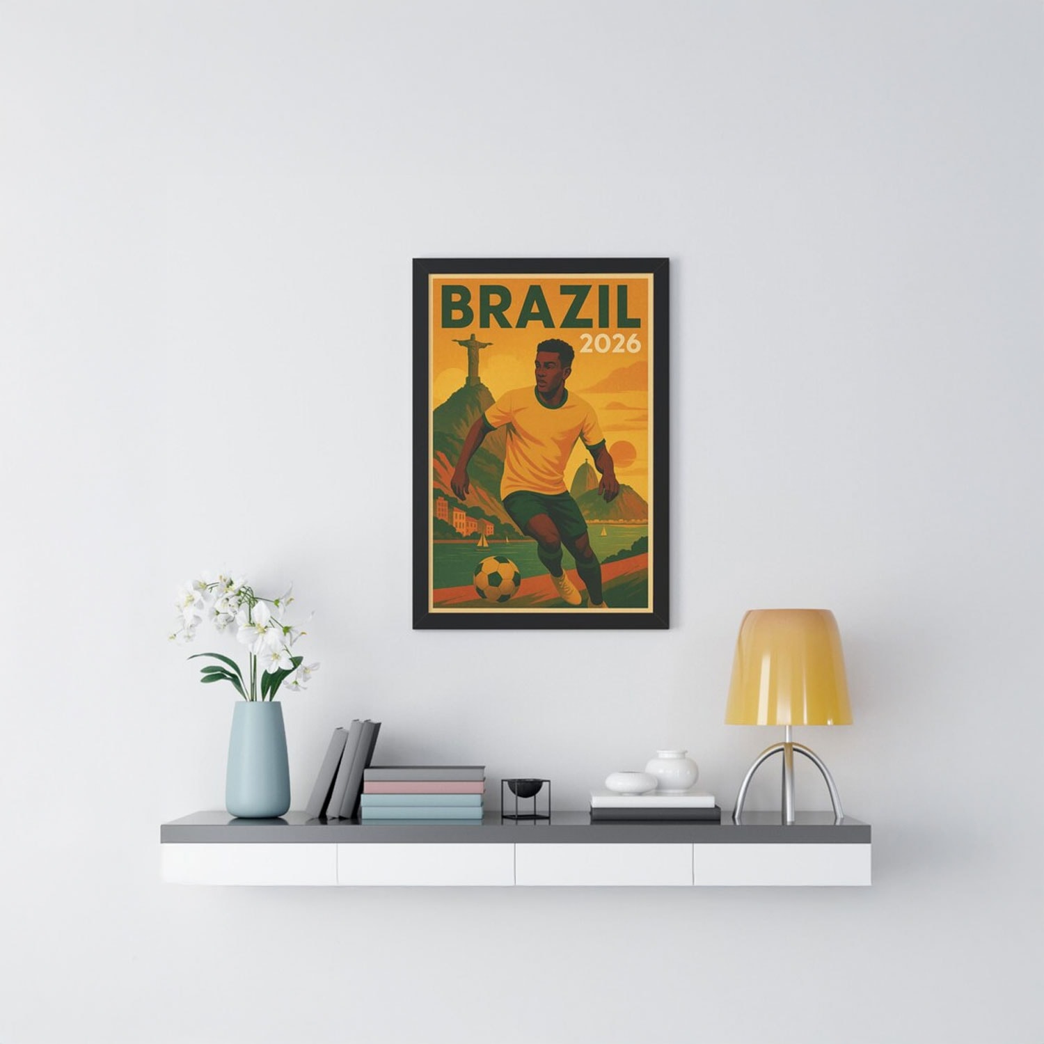 Brazil 2026 Retro Vintage Soccer Framed Print – Classic Style for True Seleção Fans