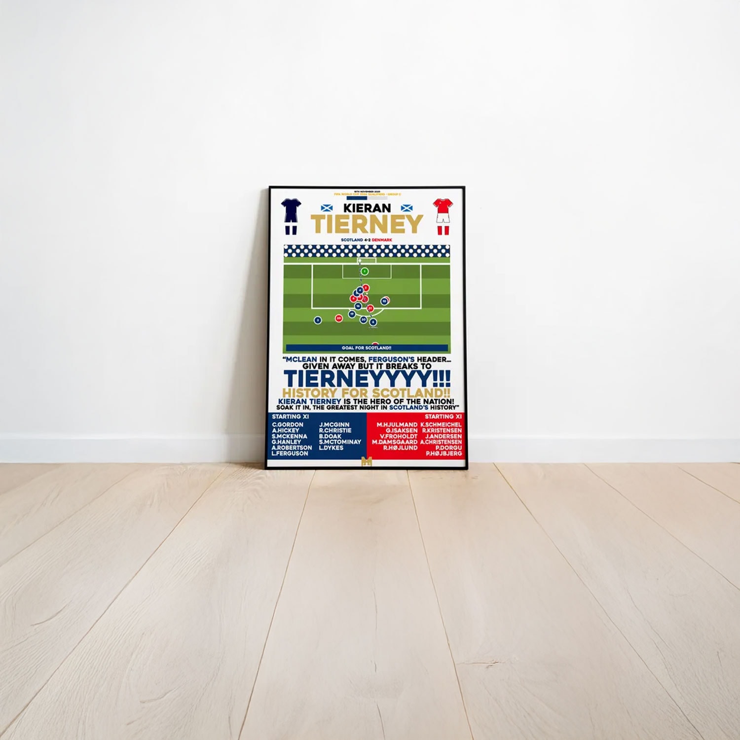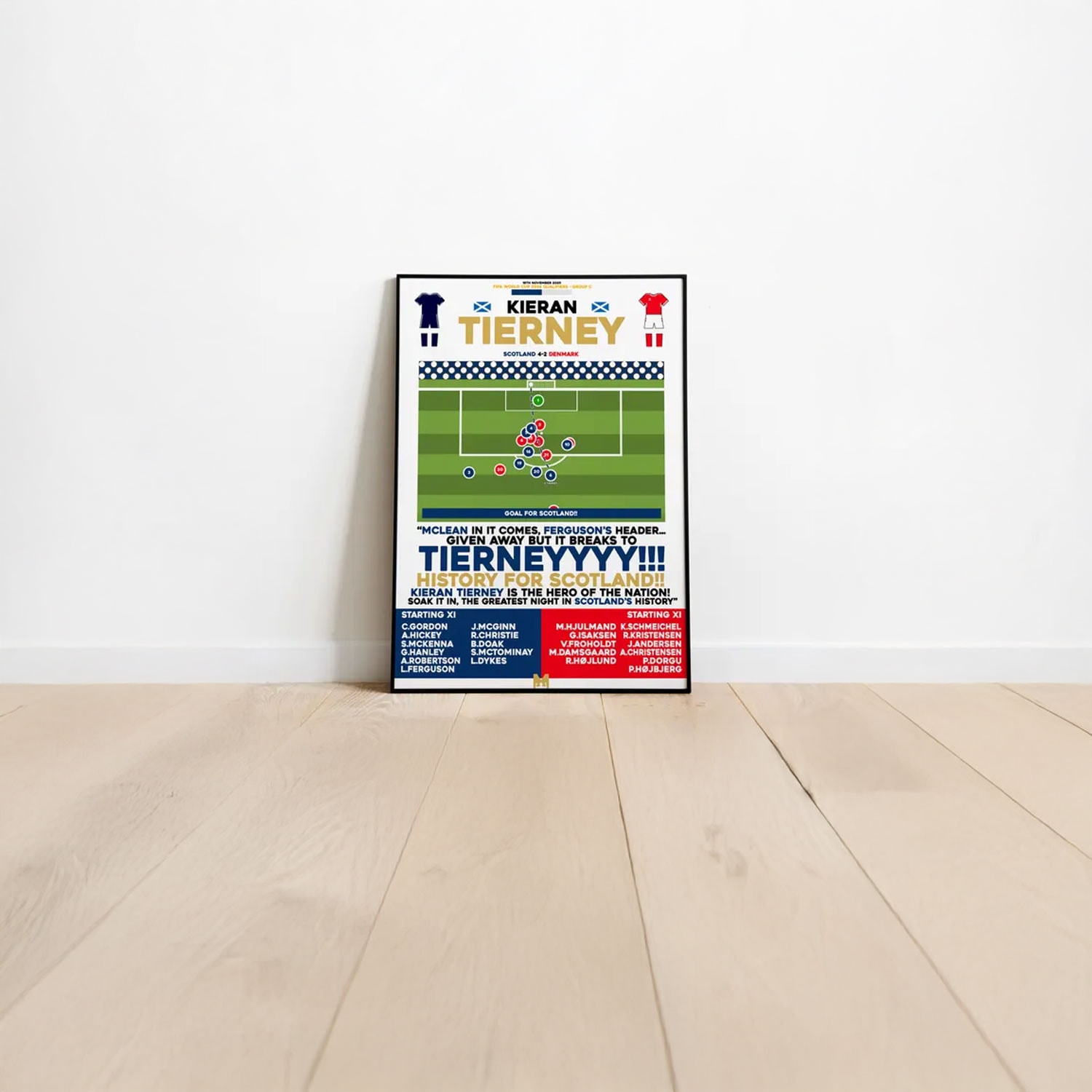 Football Wall Art, Kieran Tierney v Denmark Print, Scotland Poster