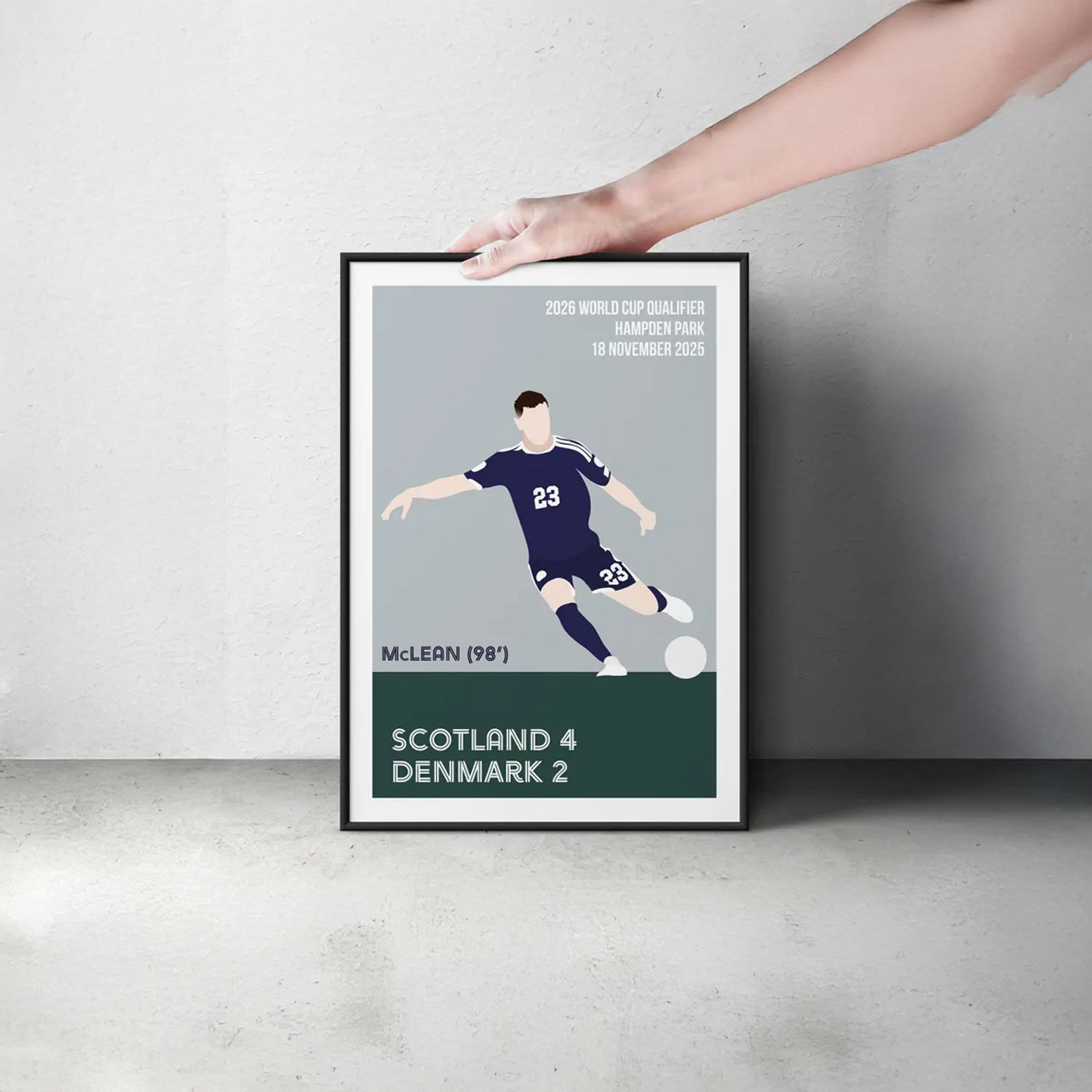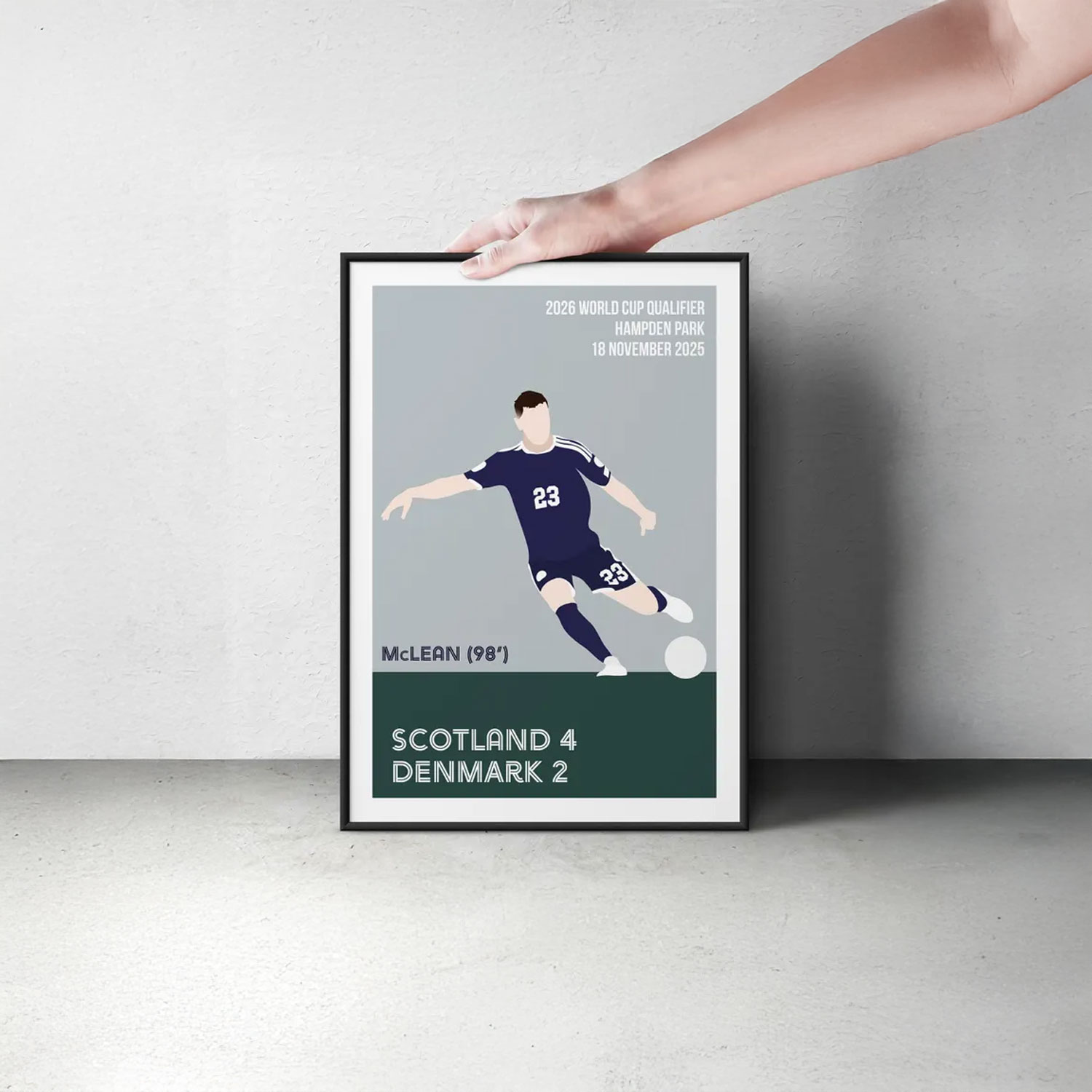 Celebrate one of Scotland’s standout football moments with the Kieran Tierney Goal Poster – Scotland Victory Print, a bold and dynamic art piece capturing the power, passion, and determination of Kieran Tierney on the international stage. Perfect for Tartan Army supporters and football art collectors, this poster brings the thrill of victory straight to your wall.