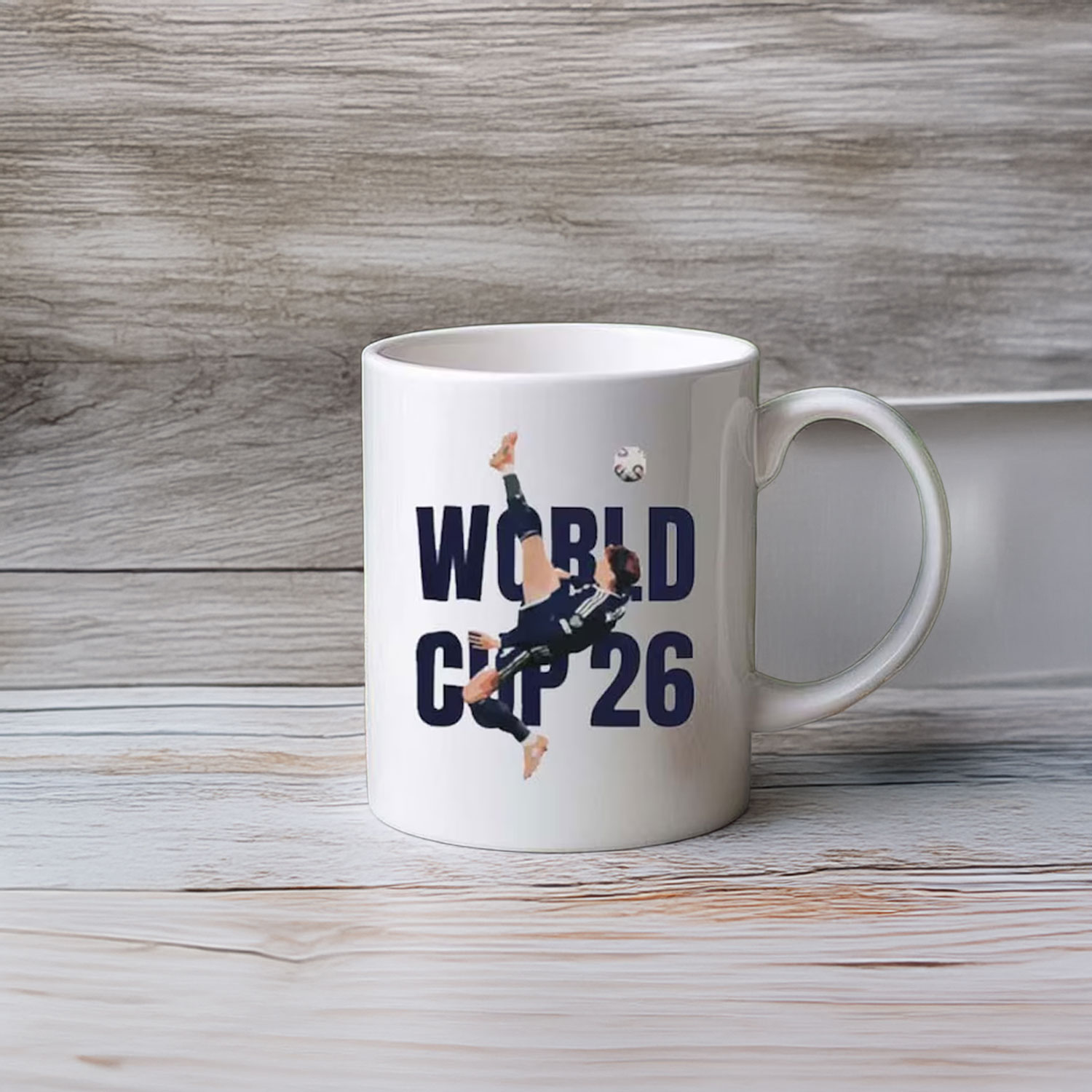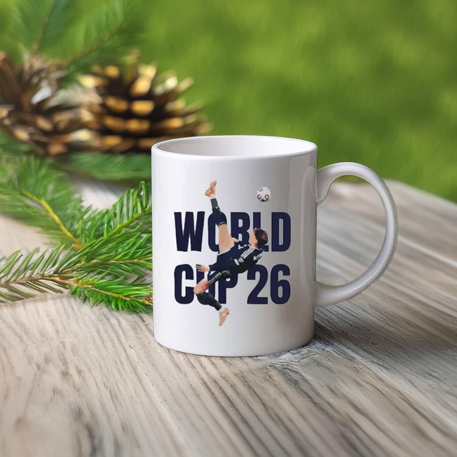 The McTominay Bicycle Kick – Scotland World Cup 2026 Mug captures one of the most electrifying sights in football: Scott McTominay launching into a spectacular overhead strike. Fierce, athletic, and full of Scottish pride, this mug celebrates McTominay’s iconic style as Scotland charges toward the 2026 World Cup.