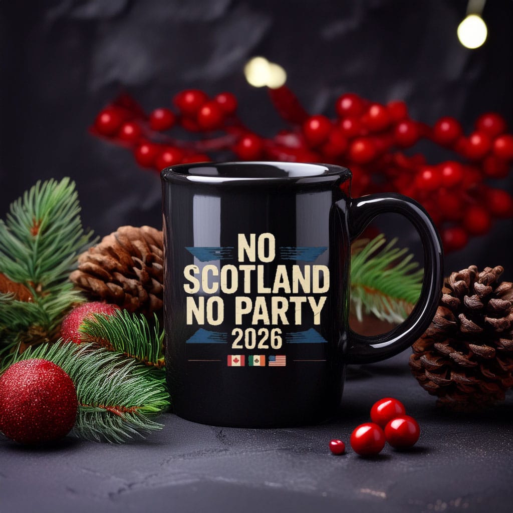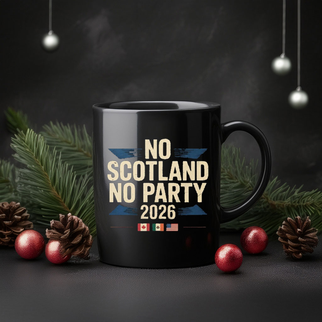 The No Scotland No Party 2026 – Scotland World Cup Mug celebrates the unforgettable spirit, humour, and energy of the Tartan Army as Scotland heads toward the 2026 World Cup.
