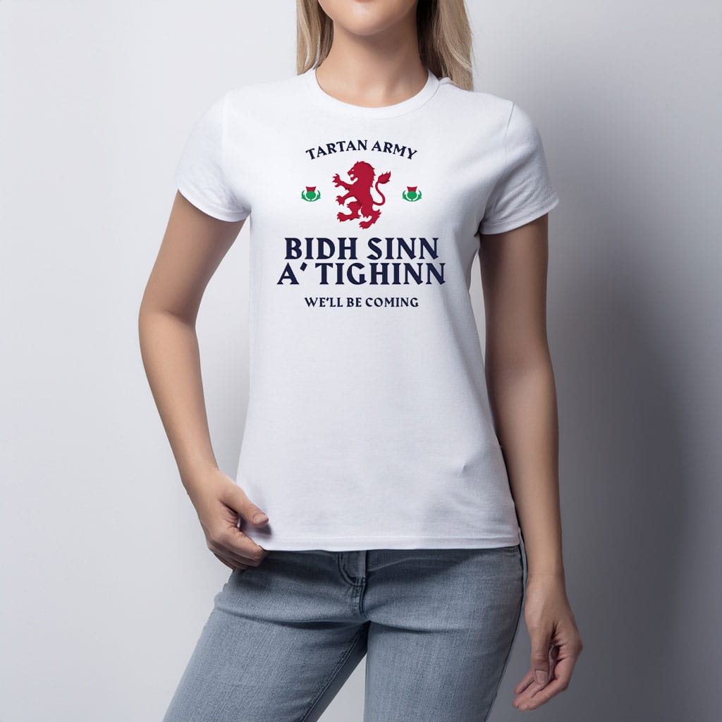 Official Tartan Army Gaelic “We’ll Be Coming” T-Shirt – Proud Words, Strong Support