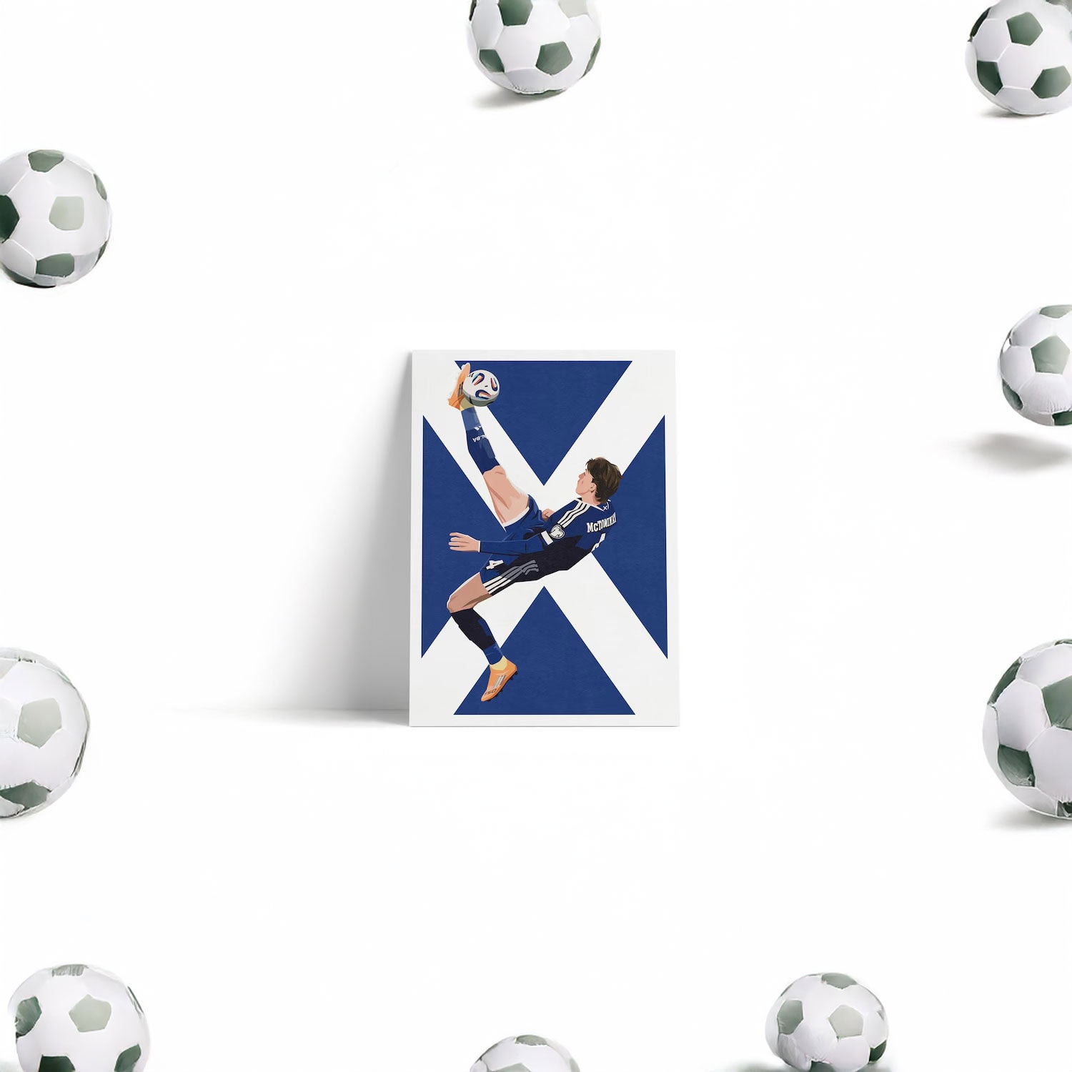 With a striking illustration of McTominay’s overhead kick paired with Scotland-inspired graphics, this poster brings matchday energy straight to your walls — perfect for fans celebrating Scotland’s rising star and unforgettable goals.