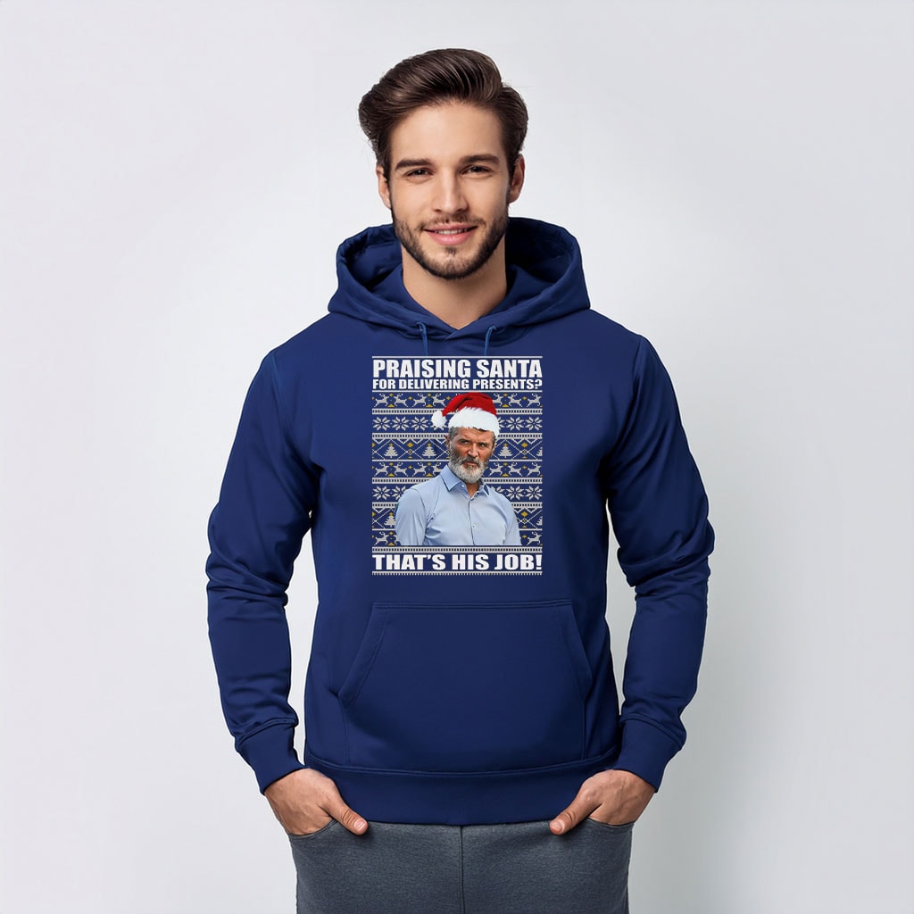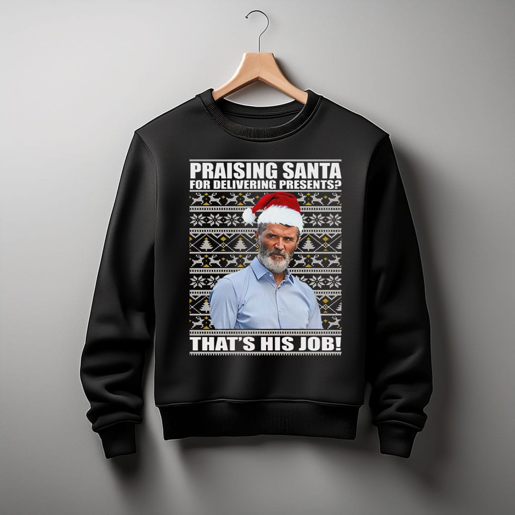 Roy Keane Praising Santa Jumper – Christmas T-Shirt, Festive Hoodie & Football Lovers Sweatshirt