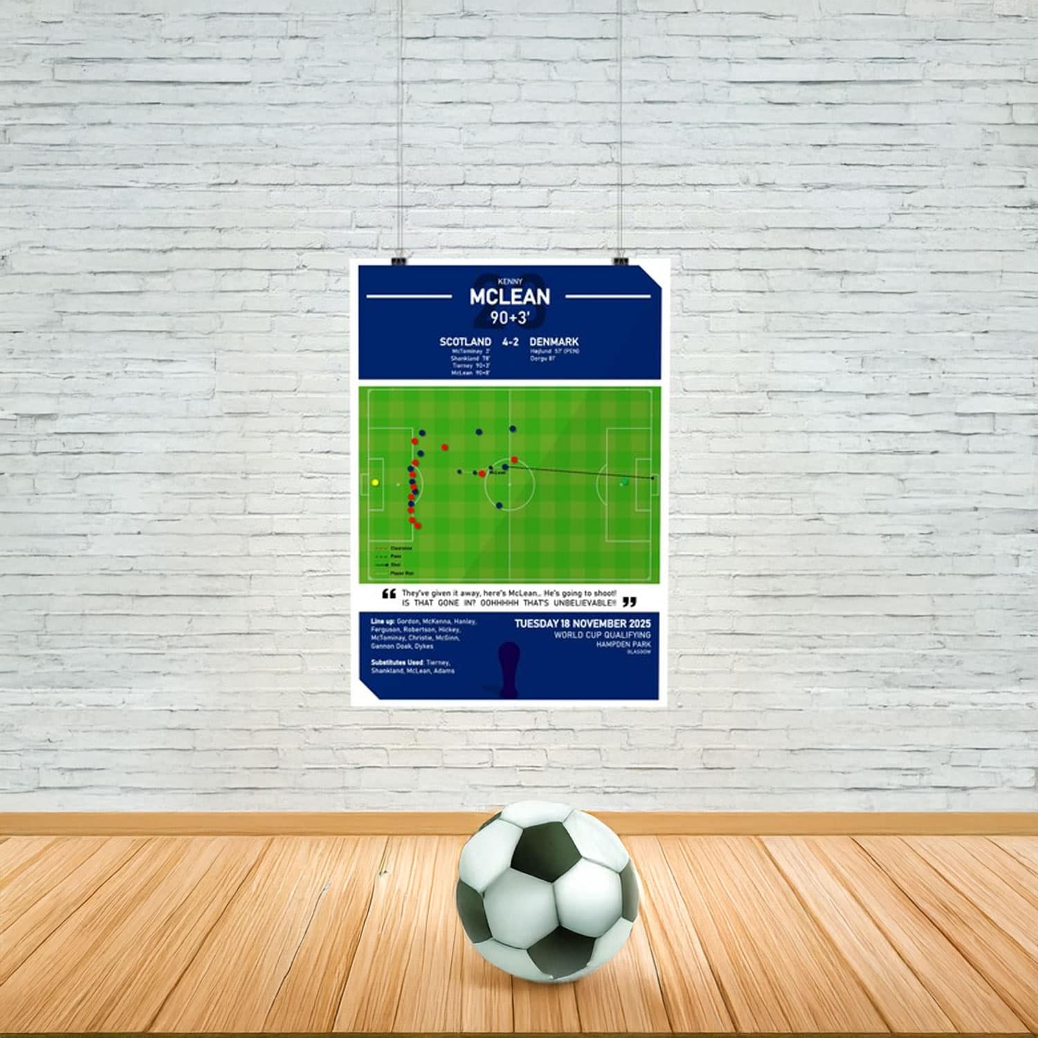 This poster features a dynamic illustration of Kenny McLean at the exact moment of his match-winning strike — the goal that sent fans into euphoria and etched itself into Scotland’s football history. With bold typography, match-inspired detailing, and tartan accents, it brings stadium energy straight to your wall.