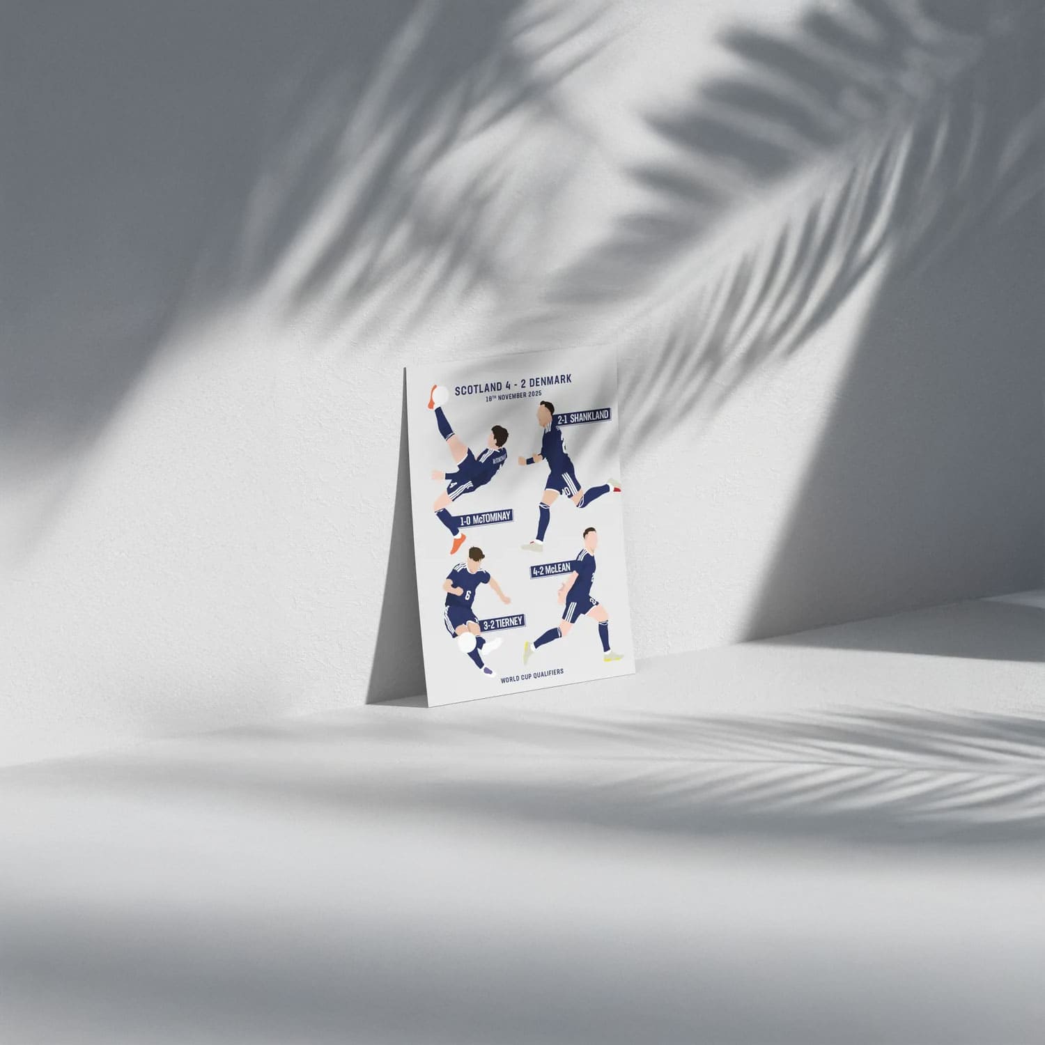 The Scotland vs Denmark World Cup Qualifier Print Poster is more than decoration — it’s a celebration of a decisive moment in Scotland’s journey toward World Cup 2026. Hang it proudly and relive the pride of qualification night every day.