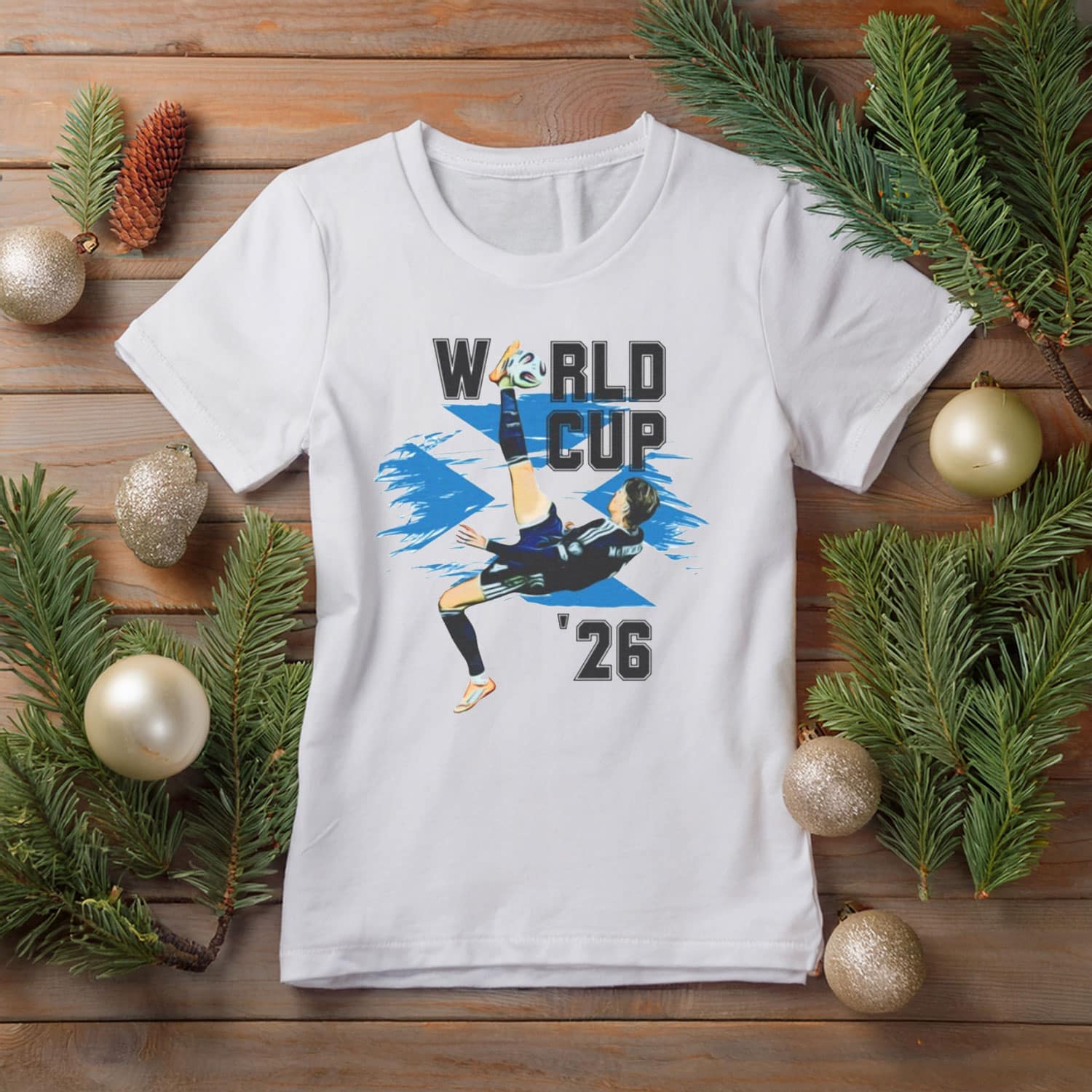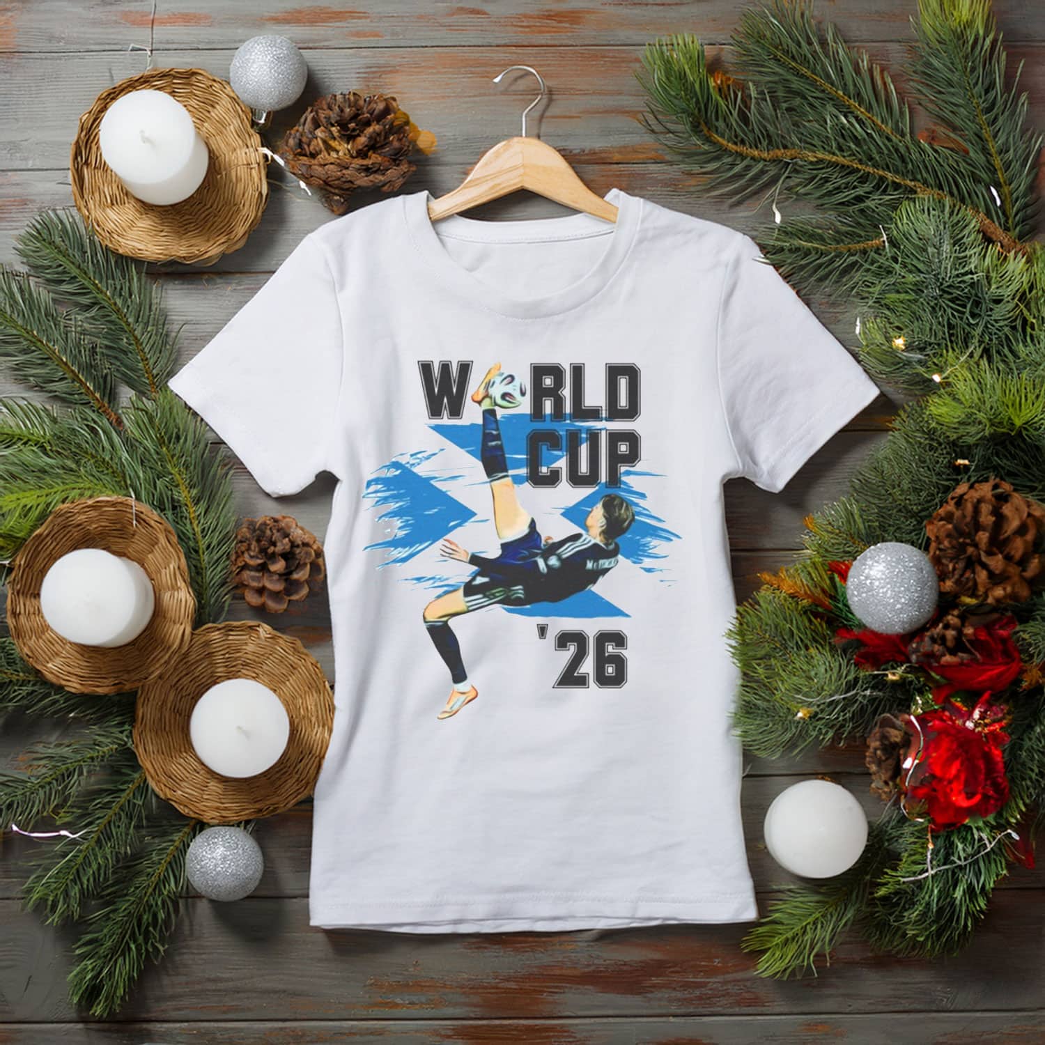 The Scotland World Cup – McTominay Bicycle Kick Football T-Shirt celebrates one of the most electrifying moments in modern Scottish football. Designed for true Tartan Army supporters, this tee captures the intensity, passion, and athletic brilliance of McTominay’s unforgettable bicycle-kick finish.