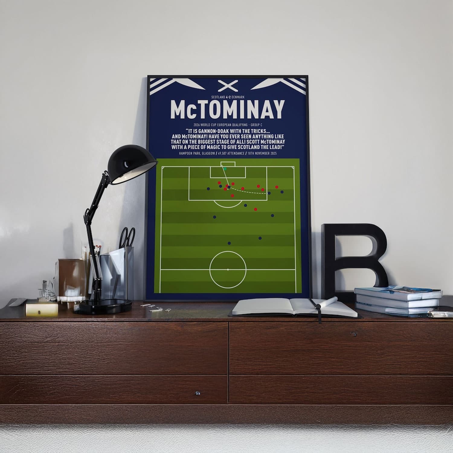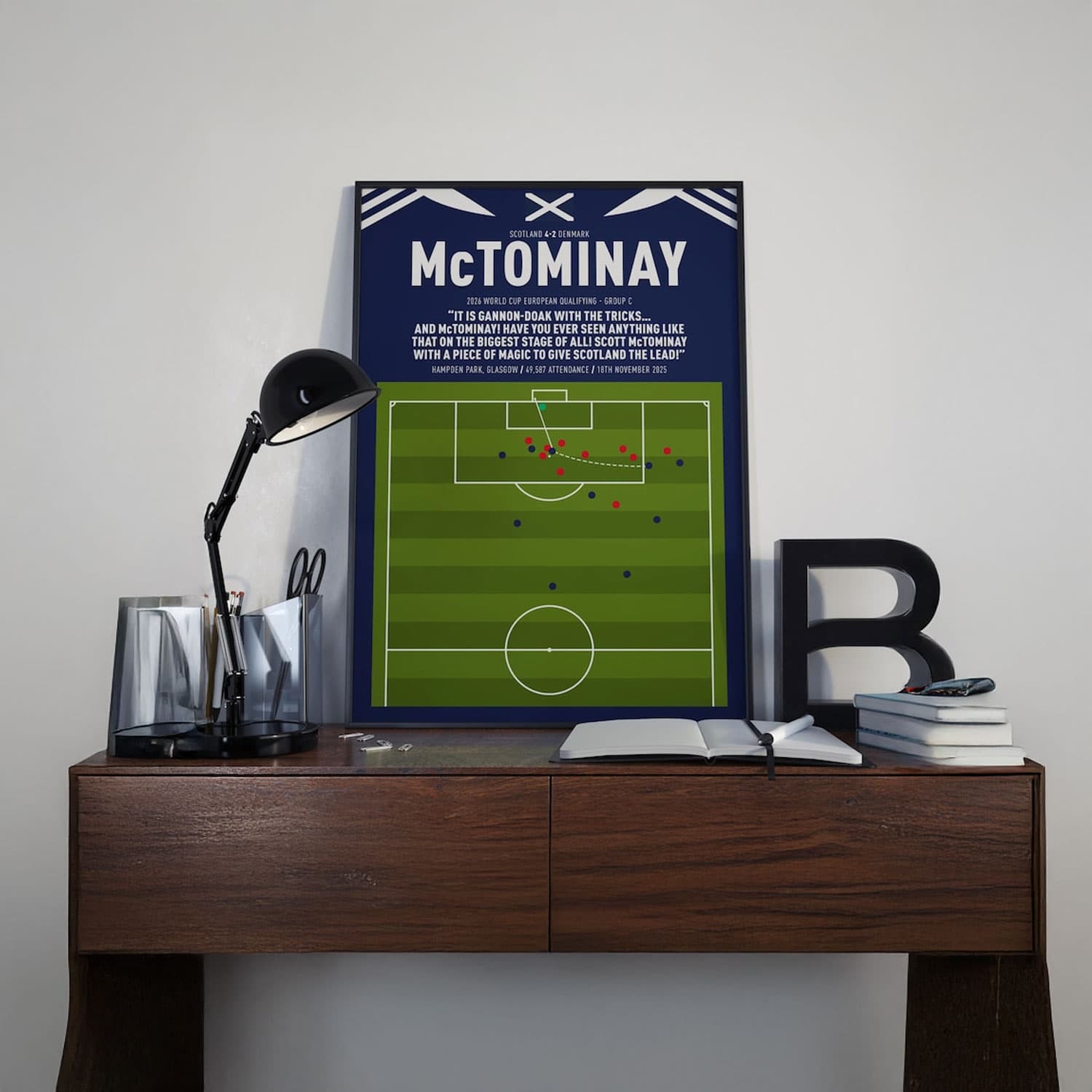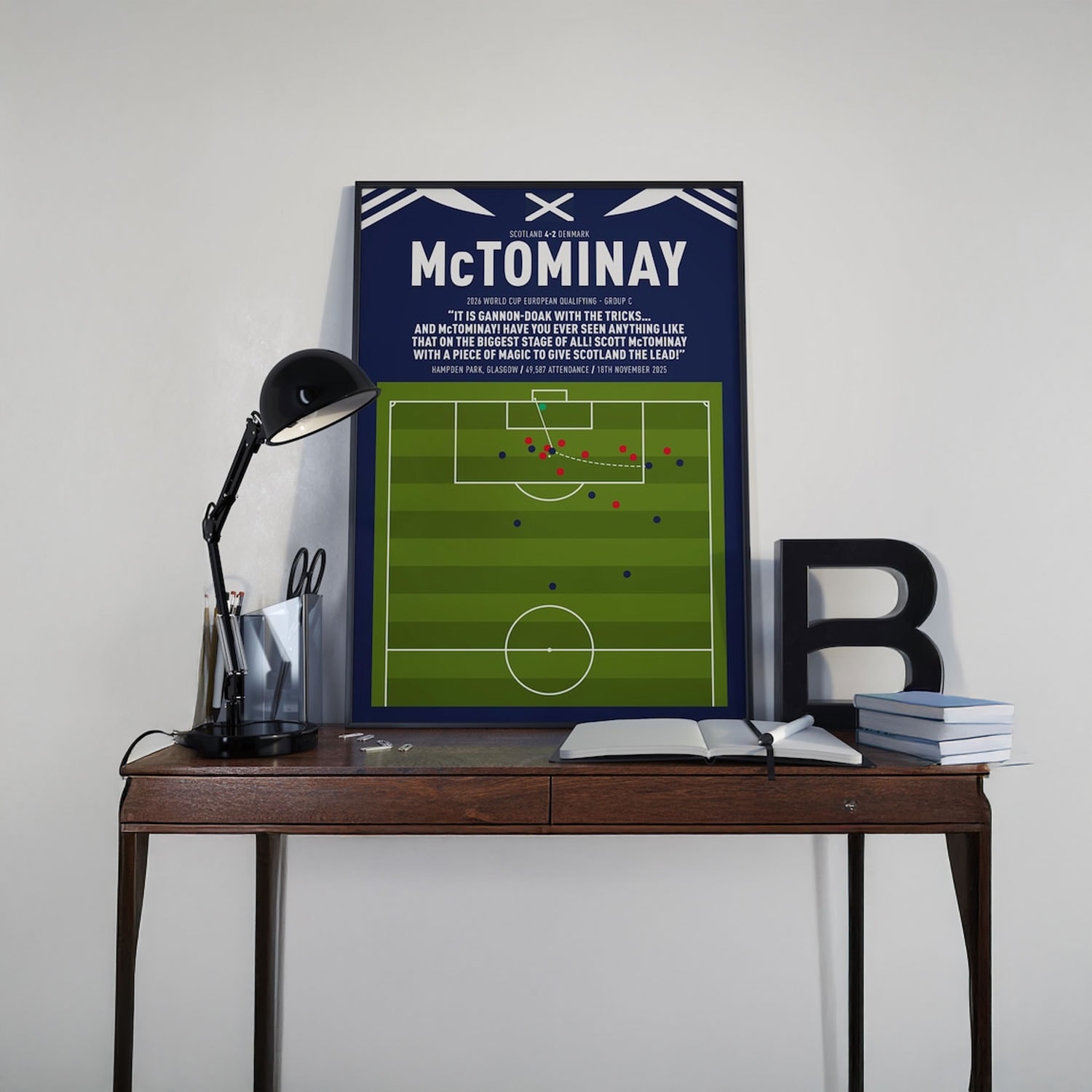 Featuring a bold illustration of McTominay mid-strike, surrounded by dramatic motion effects and Scotland-inspired graphic elements, this poster brings the energy of qualifying football right into your space. It’s the perfect way to honor Scotland’s road to the World Cup — and one of its standout performers.