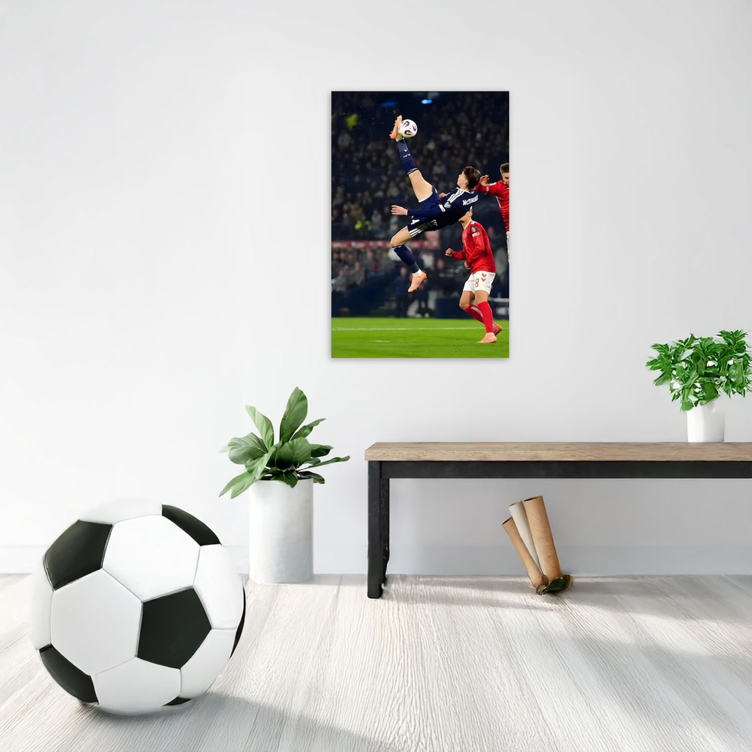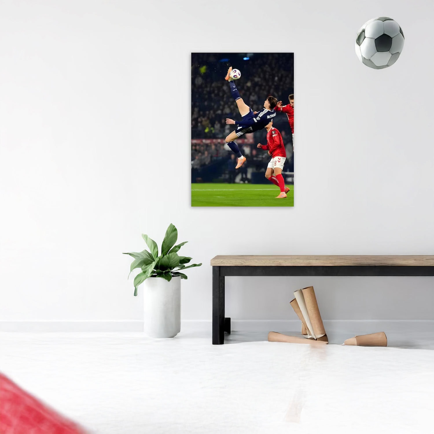 This poster showcases a dramatic illustration of McTominay mid-air, executing the overhead kick that became an instant highlight of Scotland’s World Cup journey. With bold lines, sharp detailing, and subtle tartan-inspired elements, it brings stadium-level energy straight to your wall.