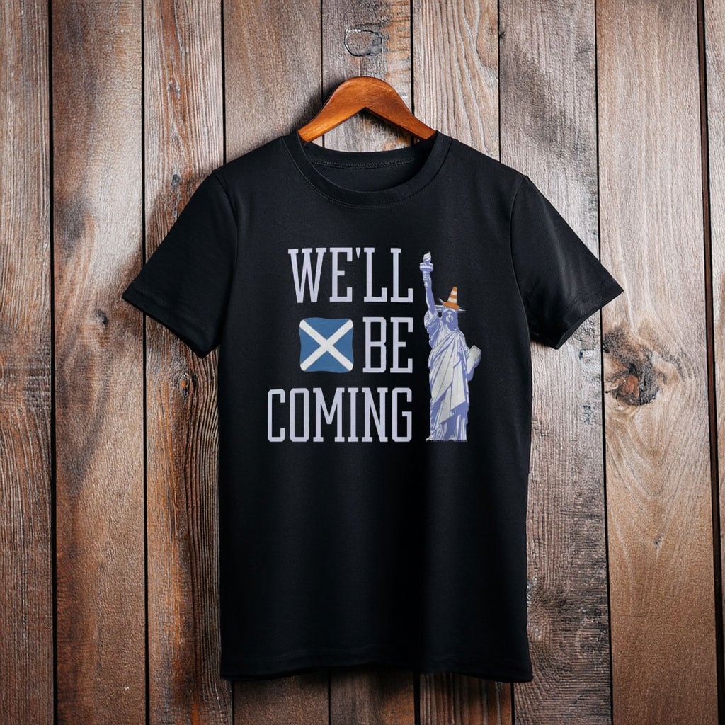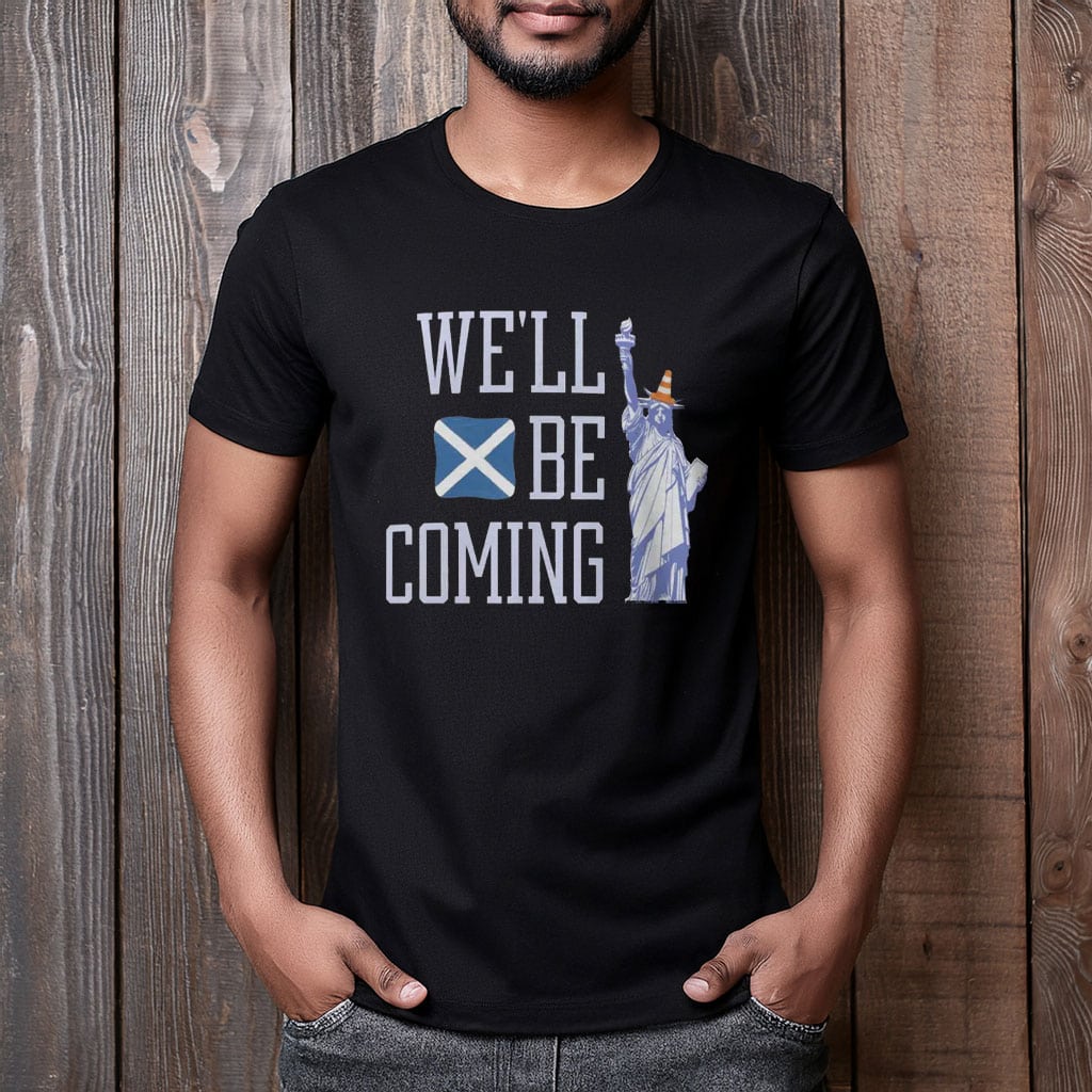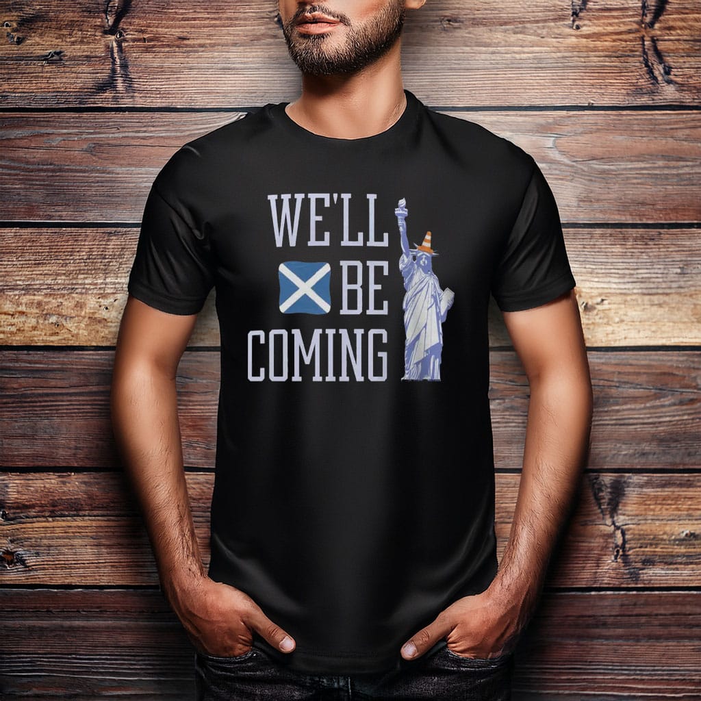 Answer the call of Scottish football with the Tartan Army We’ll Be Coming Scotland Football T-Shirt. Inspired by the famous chant sung by supporters around the world, this design captures the unstoppable spirit of the Tartan Army and their promise to follow Scotland wherever the team plays.