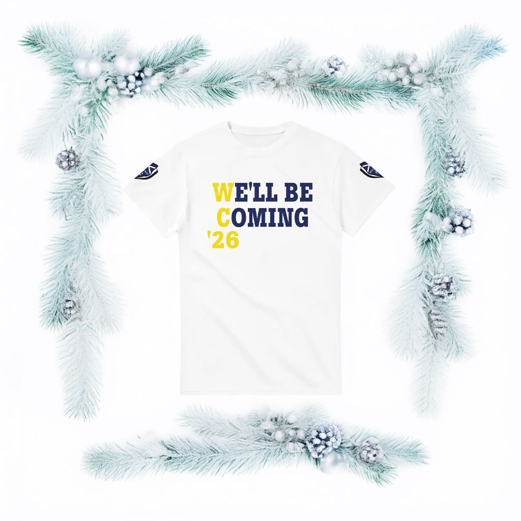 Featuring bold lettering, Scottish colors, and a design inspired by the legendary fan chant “We’ll Be Coming…”, this shirt brings the heart and soul of Scotland’s support into a stylish, wearable piece.