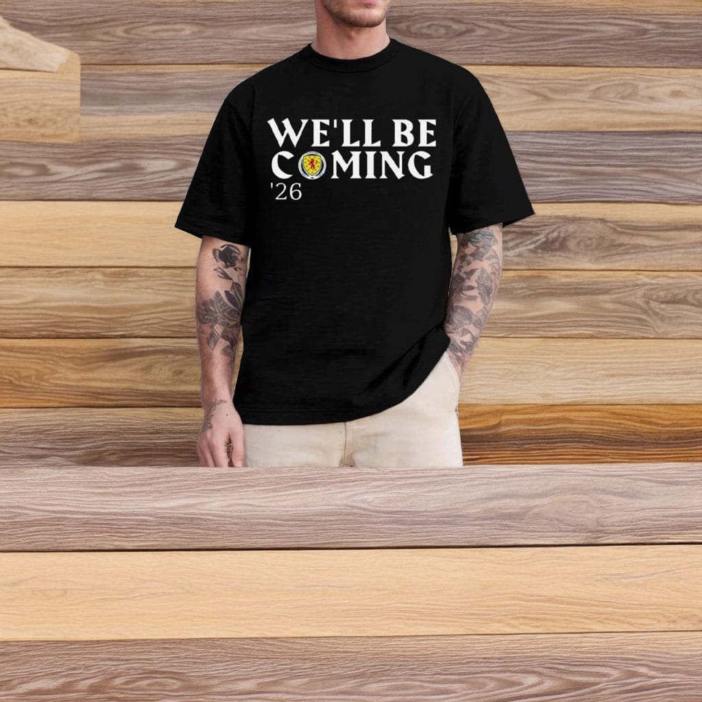 Show your passion for Scotland’s football journey with this We’ll Be Coming ’26 Football Fan Shirt, inspired by the iconic Tartan Army chant and the excitement building toward the 2026 World Cup. Bold, clean, and full of supporter energy, this tee is perfect for match nights, fan zones, pub meetups, away trips, or everyday Scottish streetwear.