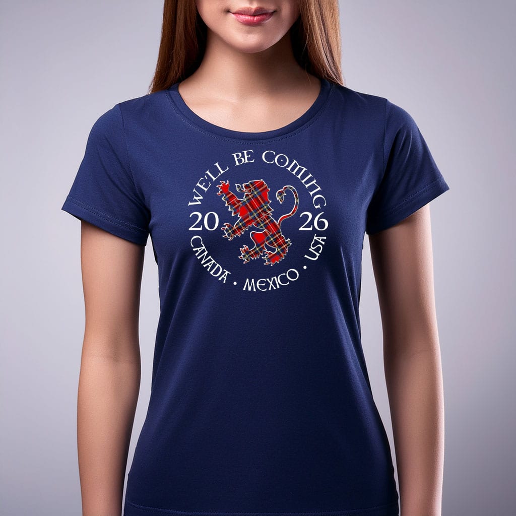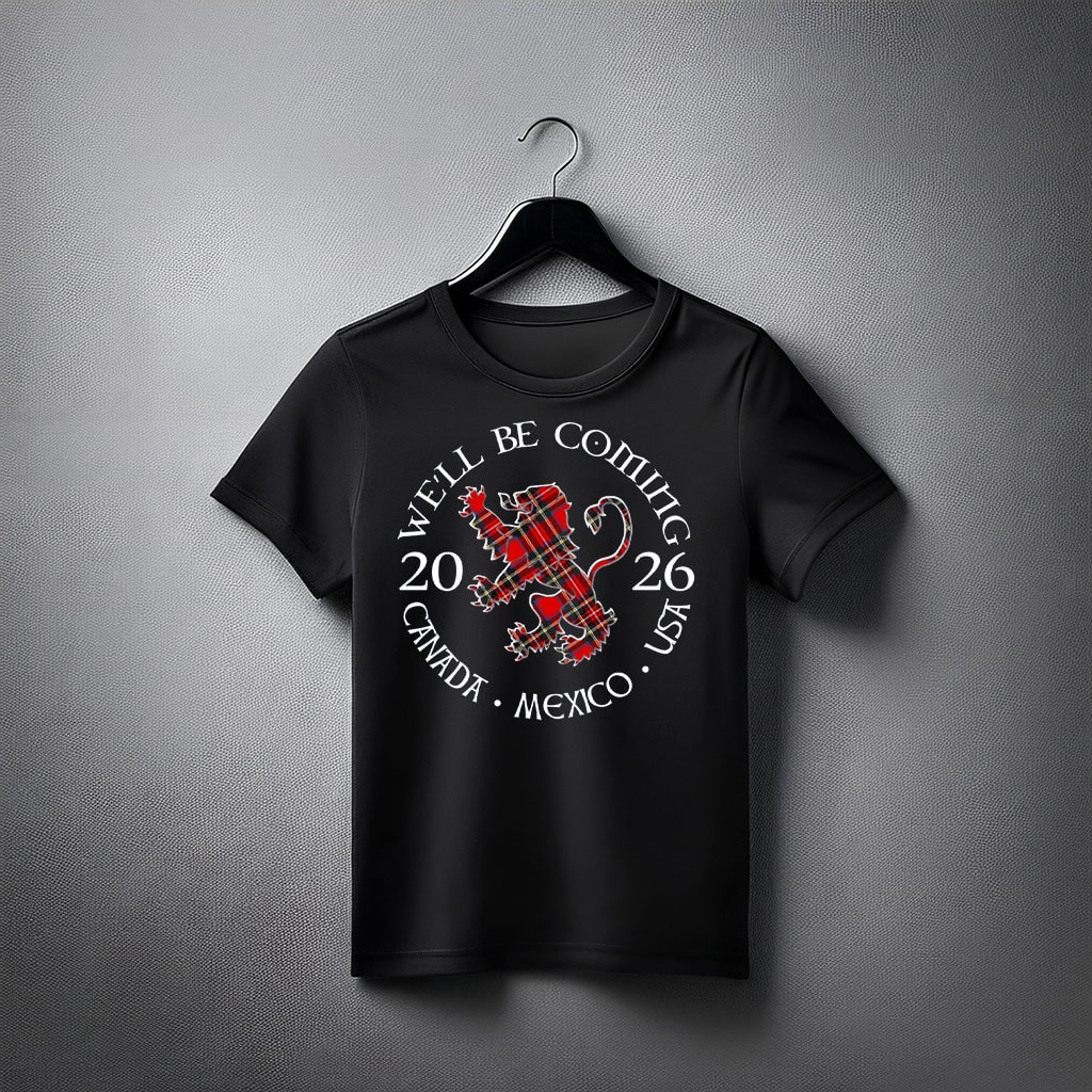 Crafted from soft, breathable fabric, this unisex shirt keeps you comfortable from kickoff to the final whistle. The design features strong Scottish elements and the iconic “We’ll Be Coming” slogan—recognized instantly by fans across the country and abroad. Whether you’re cheering at Hampden Park or celebrating with friends, this shirt brings the spirit of Scotland everywhere you go.