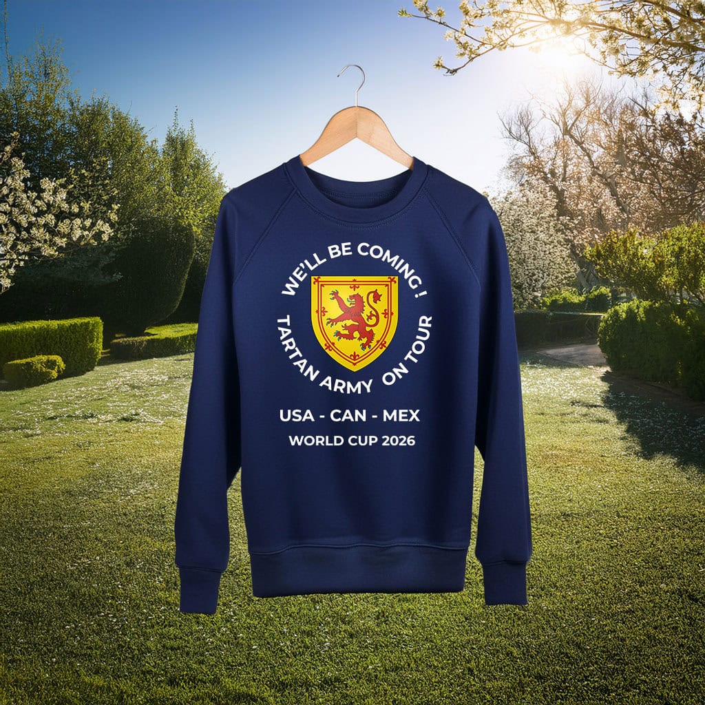 Designed for everyday comfort with a clean, bold look, the We’ll Be Coming Tartan Army On Tour World Cup 2026 Sweatshirt is perfect for cooler match days, travel, fan zones, watch parties, and casual wear. It’s an essential layer for supporters who want warmth without sacrificing style or message.