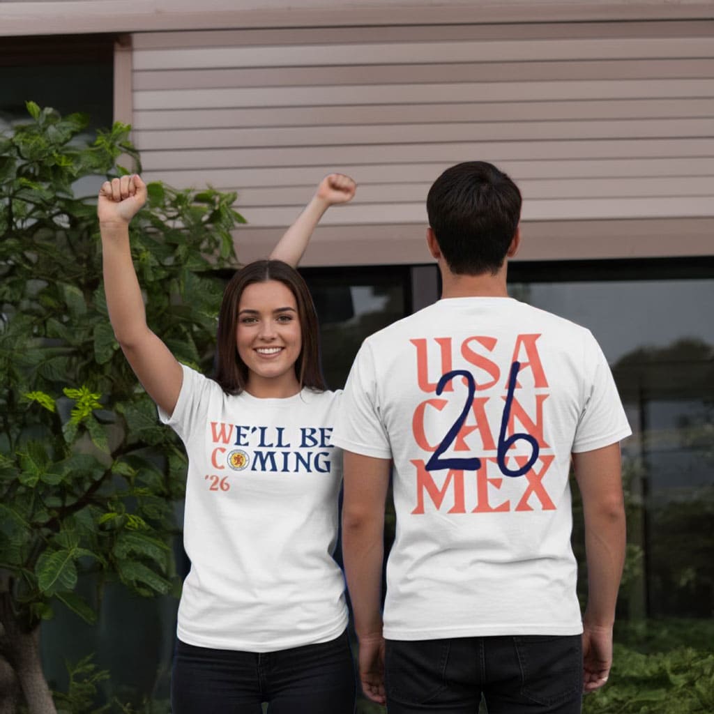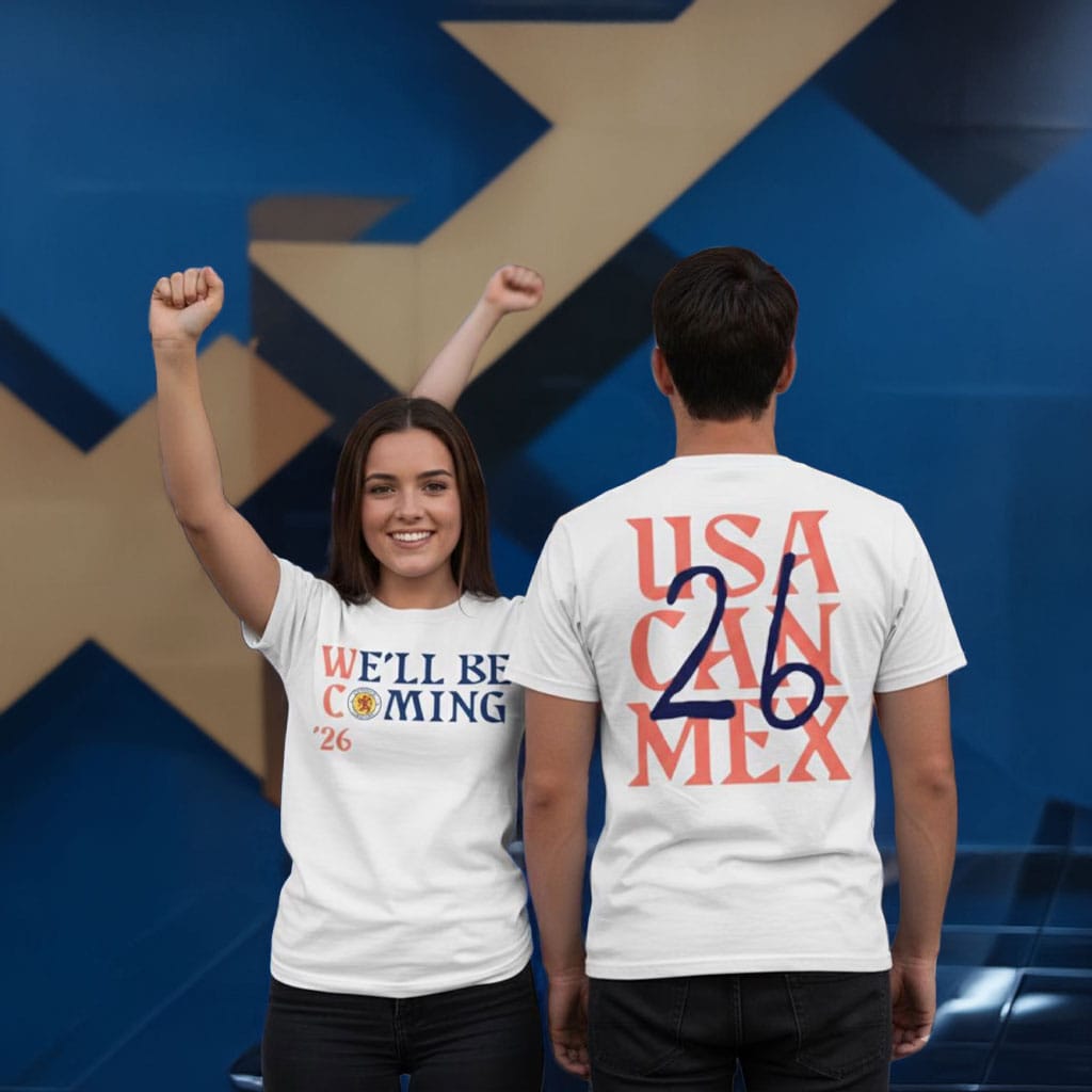 Featuring a clean, high-impact design, the We’ll Be Coming Scotland World Cup 2026 T-Shirt delivers a powerful message that’s easy to read and instantly recognizable. It’s a timeless fan piece for those ready to stand together and support Scotland throughout the 2026 World Cup.