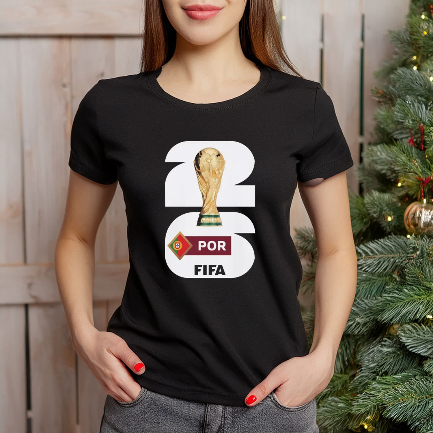 This t-shirt highlights Portugal’s football heritage with a clean, modern layout. Key design elements may include: